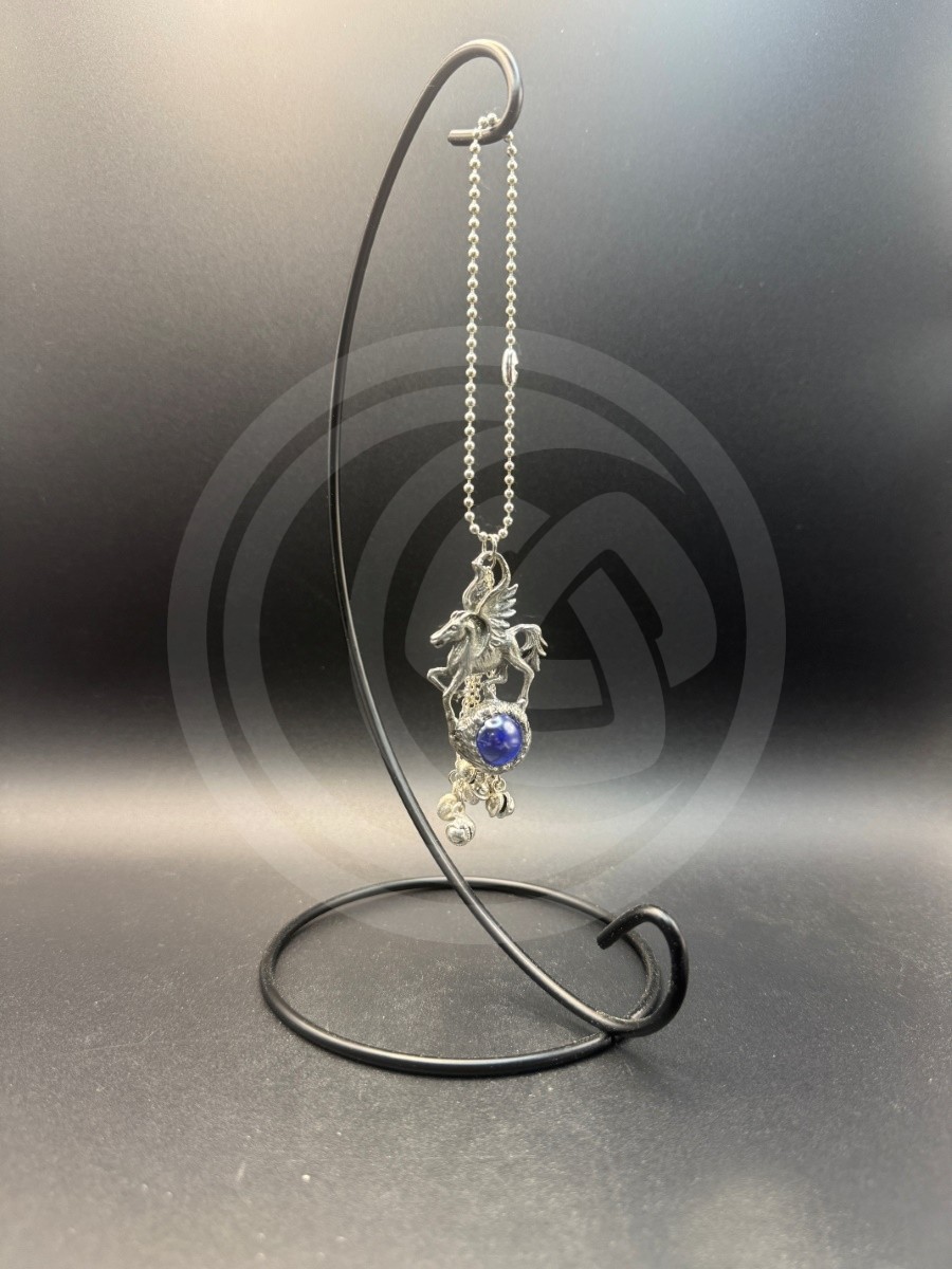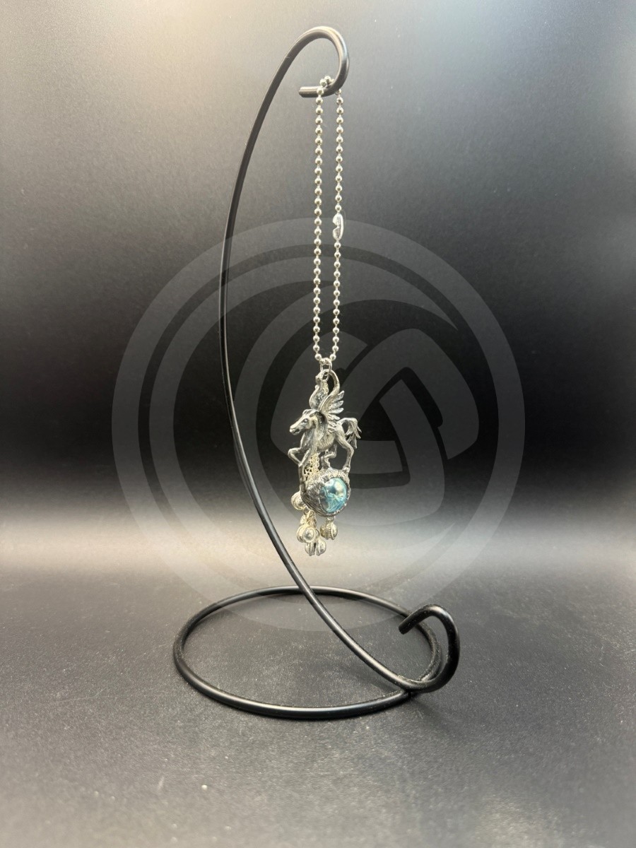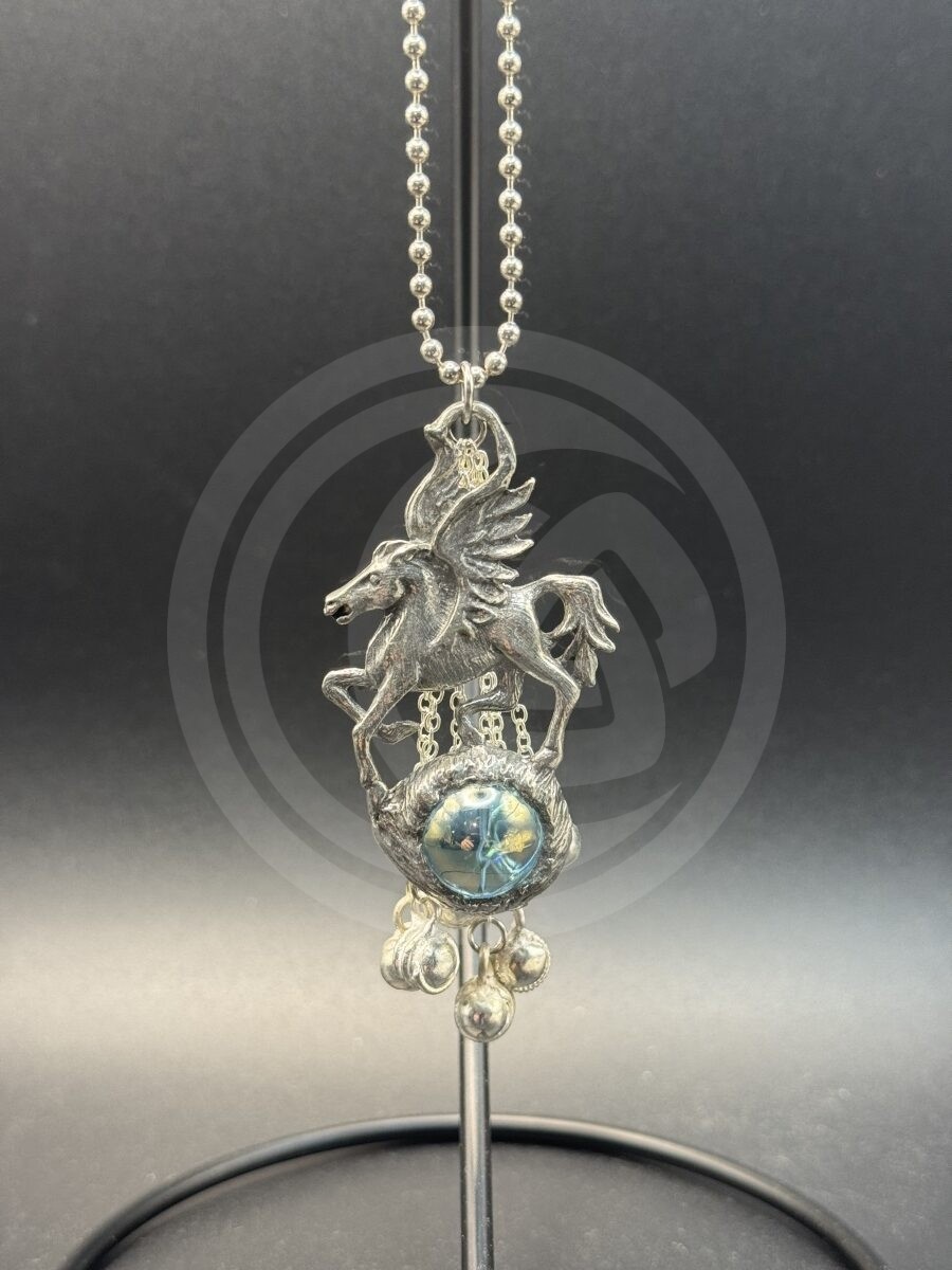 The majestic Pegasus prances atop a glass orb.