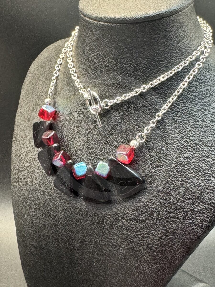 These almost-black red geometric beads have just begged to be used for a few weeks now, and finally they have a home in this mod set!