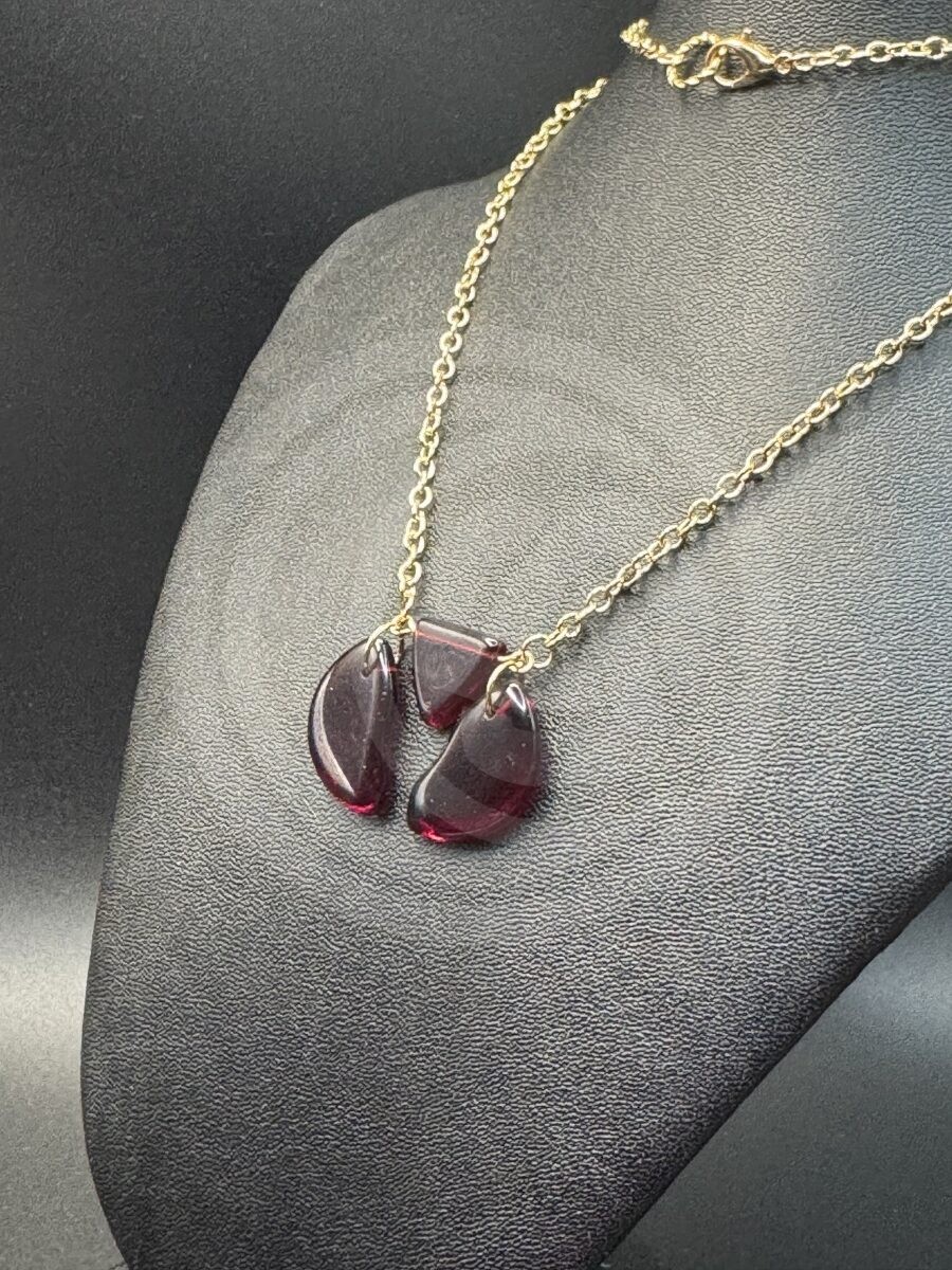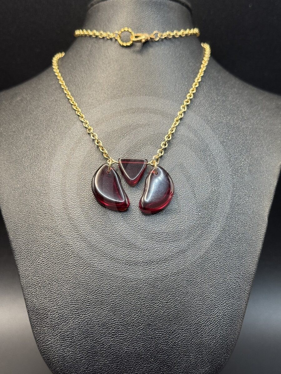 These deep red abstract glass beads seem to fit together just right, don’t you think?